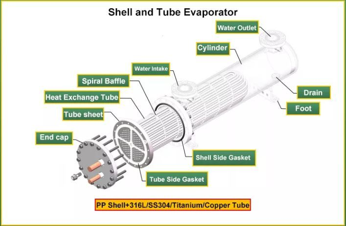 1)Heat transfer Tube: 316L / SUS304 / Copper / Titanium/Aluminum Brass/Copper Nickel B10 B30